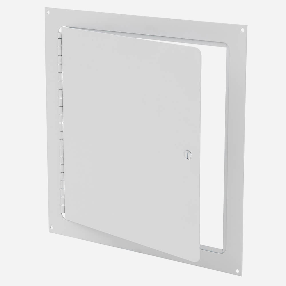 Doors are designed for flush installation in dry wall surfaces. Door features a concealed hinge that prevents distortion and closes door squarely.